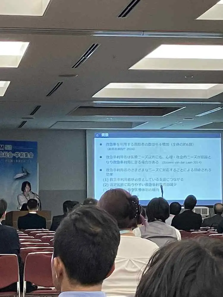 2025年10月28~30日に大阪市で開催された第53回日本救急医学会総会・学術集会のシンポジウム「高齢者救急の問題点に対する取組み」で発表しました。「地域における消防機関と介護・福祉・保健機関の連携体制の実態と課題:消防本部への全国調査・インタビュー調査結果」と題して、消防機関と地域の介護・福祉・保健機関との連携の実態、連携に伴う課題、連携を推進するための提案を報告してきました。他のシンポジストは、高齢者施設からの救急搬送の分析、救急搬送におけるDo not resuscitateについての全国調査結果、地域でのAdvanced care planningの取り組みなど高齢者救急のホットトピックを報告されていて、私の報告は若干角度が異なっていたようです。ただ、これらの高齢者救急の諸問題は消防機関単独では取り組むことができないものなので、地域の機関との連携が必要だと再確認しました。